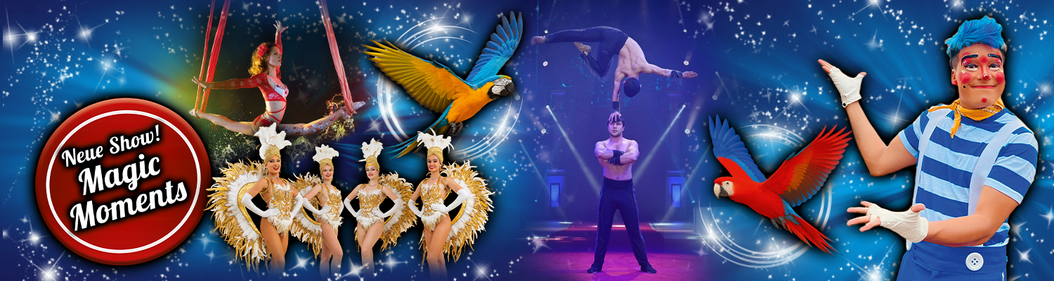 wir sind zurück mit einem völlig neuem Programm der Superlativen! Unseren 19. Geburtstag feiern wir mit internationalen Spitzenartisten, preisgekrönten Tierdressuren und herzerfrischenden Clowns. Tauchen Sie ein in unsere fantastische Traumwelt und erleben Sie ein Programm voller Sensationen, welches exklusiv für Schweinfurt zusammengestellt wurde.